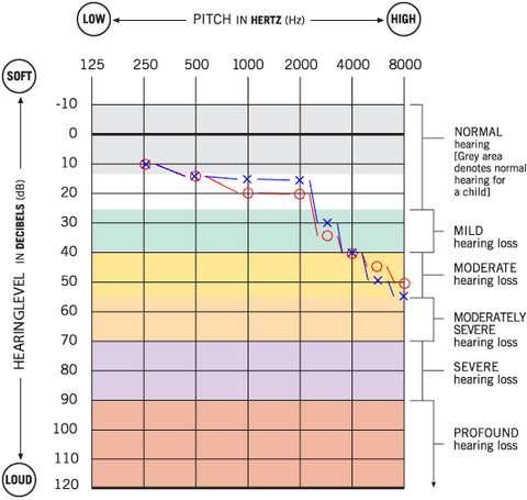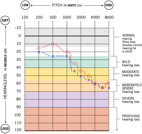 Late 2023 hearing assessment revealed that Ms. Maryfield's hearing remained within the normal range at 250Hz, whereas at 500Hz starts as borderline mild sensorineural hearing loss. Audiogram exhibited a range from mild to severe impairment from 500-8000Hz in both ears.
