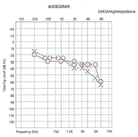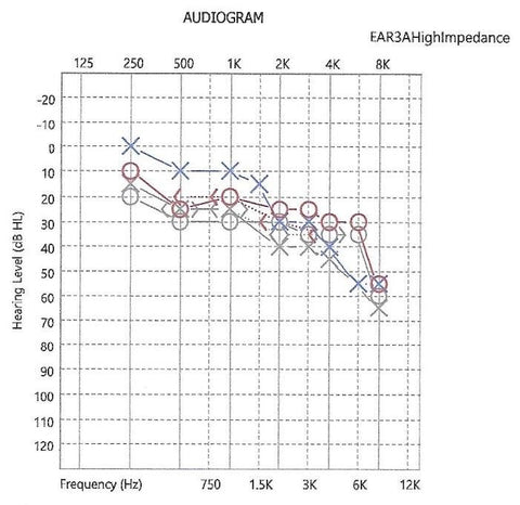 In the Winter of 2022, a little over a year later, Ms. Limas completed an annual hearing test. Her test revealed normal to moderate sensorineural hearing loss in the right ear and normal to severe sensorineural hearing loss in the left ear, with excellent word discrimination ability (100% at 65dB HL). However, there was a noticeable slight decrease in the left hearing sensitivity, especially in the high frequencies, compared to her late 2021 test results.