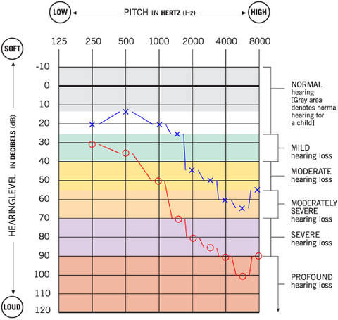 2018年、マーティンさんは、主に騒がしい状況で会話を理解するのに苦労するという訴えで、待望の更新聴力検査を受けるためにクリニックに戻りました。更新された聴力検査の結果、左耳は正常から下降傾向の中等度から高度から上昇傾向の中等度の感音難聴、右耳は軽度から下降傾向の重度の感音難聴であることが判明しました。2016年の聴力検査と比べて大きな変化はありませんでしたが、2000Hzで左耳の聴力閾値が25dB HLから45dB HLに低下したことが指摘されました。右耳の聴力感度は、2016年の検査結果と比べて大きな変化はありませんでした。