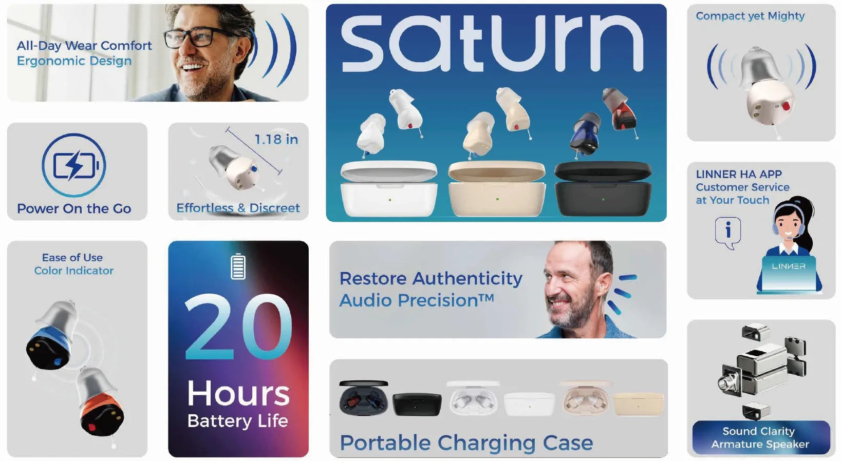 Linner Saturn’s lightweight design and 20-hour battery life make it ideal for people on the go. Whether you’re at work, running errands, or enjoying outdoor activities, it provides reliable hearing support.