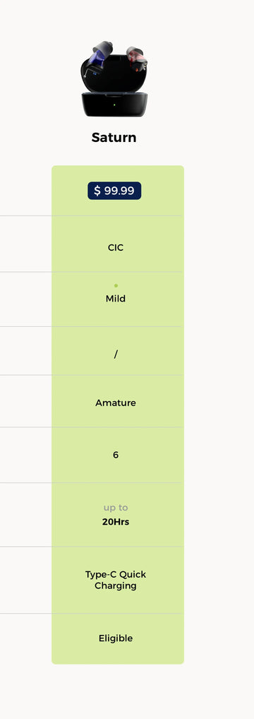 Priced at just $85, Linner Saturn is one of the most affordable OTC hearing aids on the market. It’s a great option for those who want high-quality hearing care without breaking the bank.